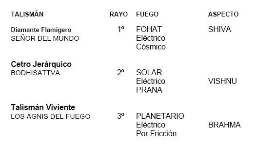 tres Talismanes sagrados, transmitiendo cada cual su Fuego,