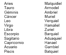 Virginiel, Libriel, Escorpiel, Capriel, Acuariel y Pisciel, en vez de la